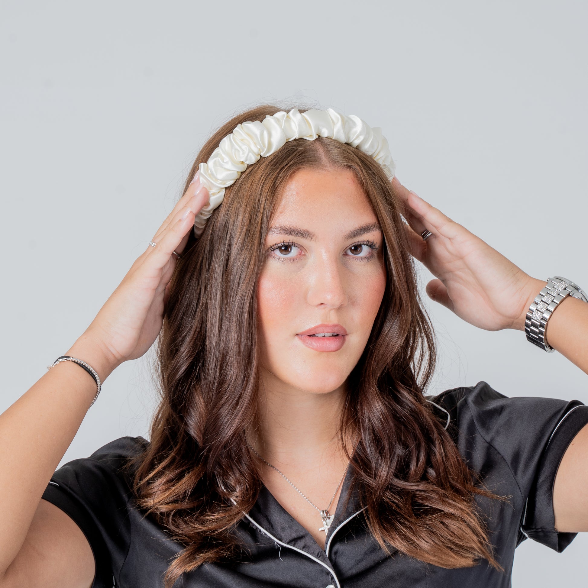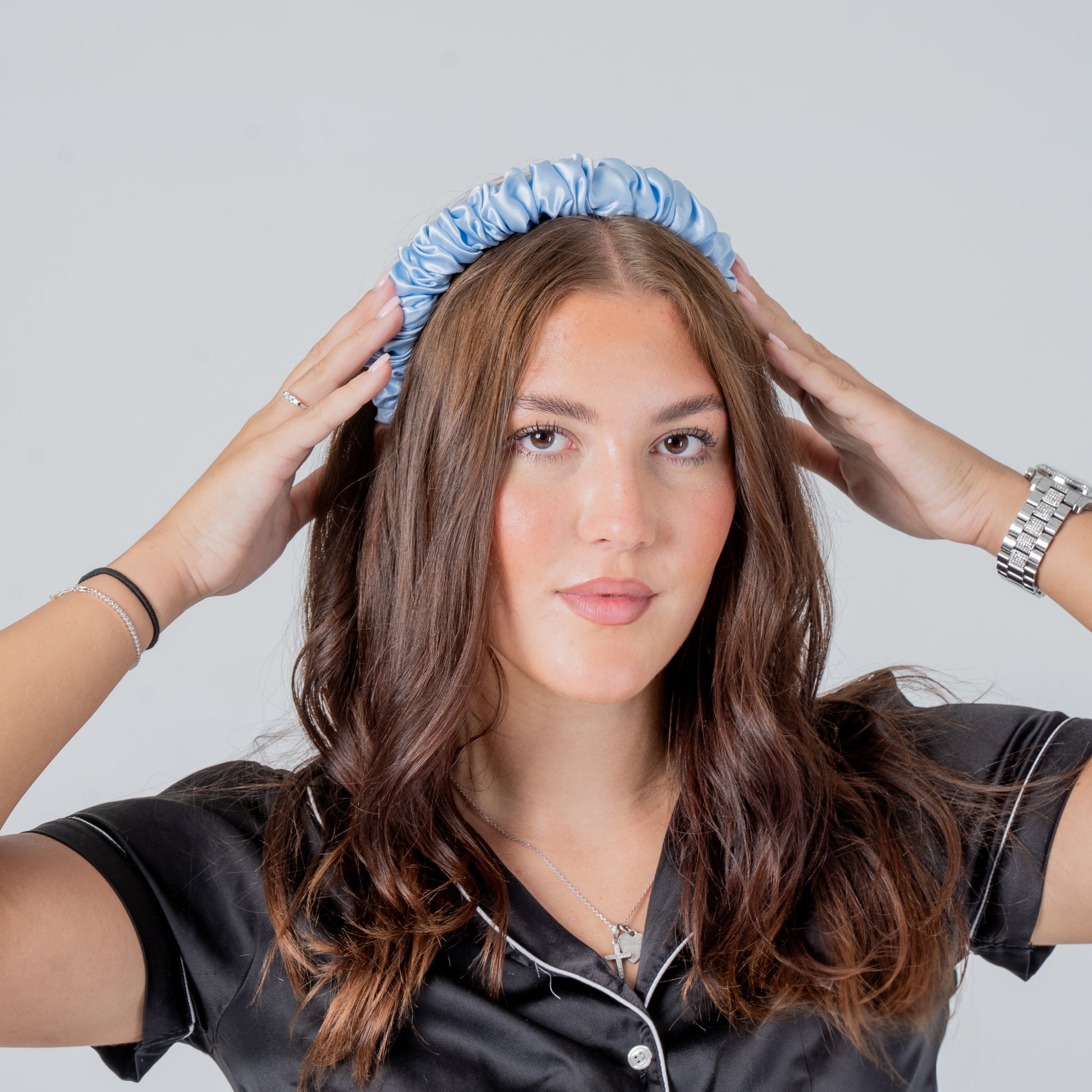 Vervollständige deinen Look mit unserem luxuriösen Seiden-Haarreif, gefertigt aus 100 % reiner Maulbeerseide. Der elegante Haarreif aus Seide verleiht deinem Styling zeitlose Eleganz, während er sanft zu deinem Haar ist – ganz ohne Ziepen, Haarbruch oder Druckstellen.